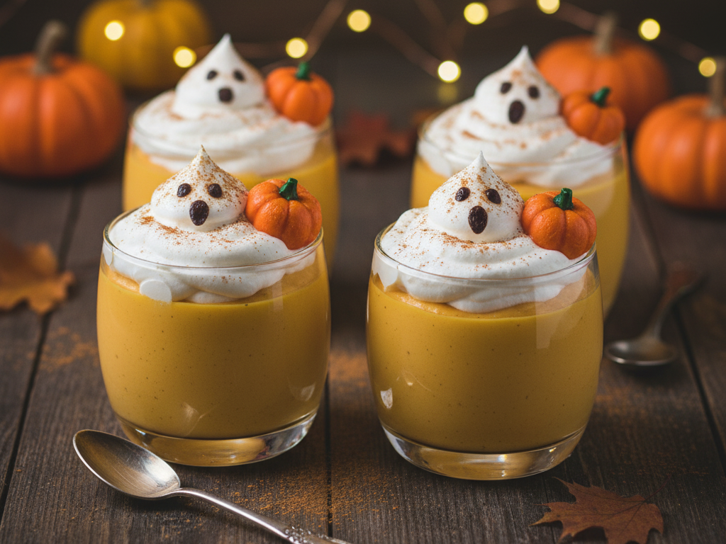 ほっくりとしたかぼちゃをたっぷり使い、なめらかに仕上げた秋の味覚プリン。オバケの顔を描いた生クリームとミニかぼちゃの飾りがハロウィンにぴったり。
